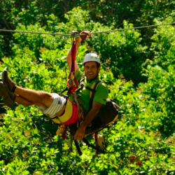 Just 20 minutes from Jaco we will arrive at our base to start your adventure. After fueling up with an authentic Costa Rican meal let’s hop in our 4×4 safari vehicles and drive up the mountain over 1000′ to get to our private reserve. Your guide will stop along the way to point out interesting flora and fauna and the incredible views of the ocean and countryside. When we arrive at the top you will be outfitted with latest and safest gear from Black Diamond in the USA. You will be instructed on the safe and proper use of our equipment then begin your 5 minute hike to the first zipline. After 2 “zips” over the river we will do a dry training rappel to familiarize you with the proper technique. A short hike down river and we will have some swimming and cliff jumping (4-25′) opportunities if you desire! Now it is time to get wet! 4 rappels through the waterfalls and YOU will do it all on your own. At all times you will be “safe and backed up” by your guides! After a short climb up we will exit the canyon and hike 15-20 minutes back to the truck. By the time you are finished you can say “I am a canyoneer!” and can check this off your bucket list.