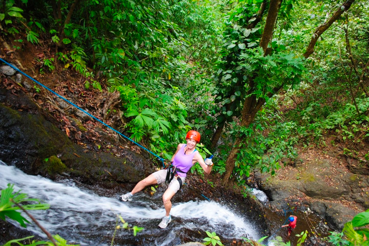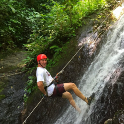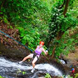 Canyoning or Canyoneering is an exciting multi-sport adventure that is gaining popularity for the masses. We have combined Ziplining, Waterfall Rappelling, and Hiking along with optional Swimming and Cliff Jumping as high as 25 feet. Canyoning is no longer just for die hard adventurers and expert climbers anymore. At Jaco Canyoning you have the opportunity to experience true Canyoning even if you have never been in a harness.