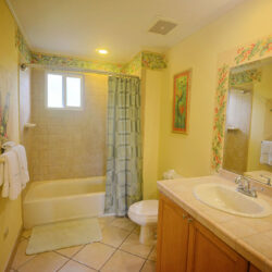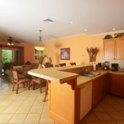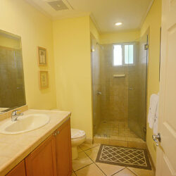This three-bedroom, two-bathroom unit includes a designer kitchen that opens into the adjoining dining area and great room; these in turn, open up onto an expansive covered balcony which is well furnished for ocean and jungle gazing.