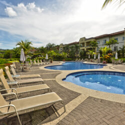 Located just right, immediately inside the main gates of Los Sueños Resort & Marina, the Del Mar Community features pretty garden walkways that curve alongside the golf course fairway, two free form community swimming pools, Jacuzzis, and shade palapas, barbecue areas, and a private fitness center.